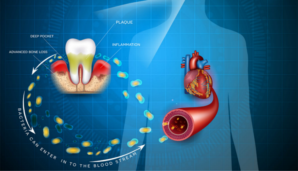 Chronic inflammation related to periodontal disease may place additional strain on the cardiovascular system and contribute to damage to blood vessels over time.